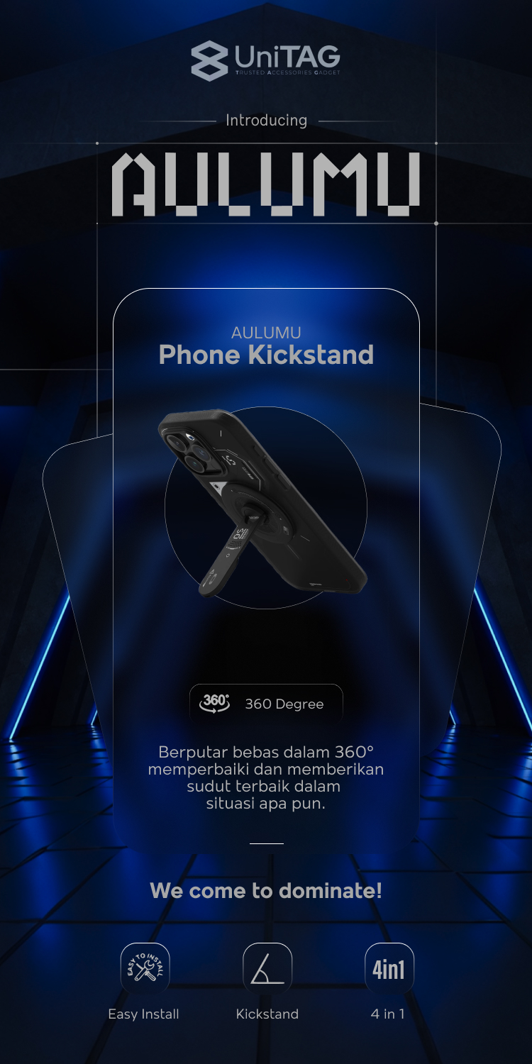 Universal Phone Kickstand MagSafe Aulumu Flip Magnetic Stand 4in1 with Box Opener adalah aksesoris yang memiliki desain unik yang membuatnya dapat diputar 360° dan dilipat 85°. Dudukan ini dapat menopang Smartphone-mu secara horizontal dan vertikal dengan banyak sudut sehingga Smartphone-mu berada pada posisi terbaik. Easy life, dominate it!
