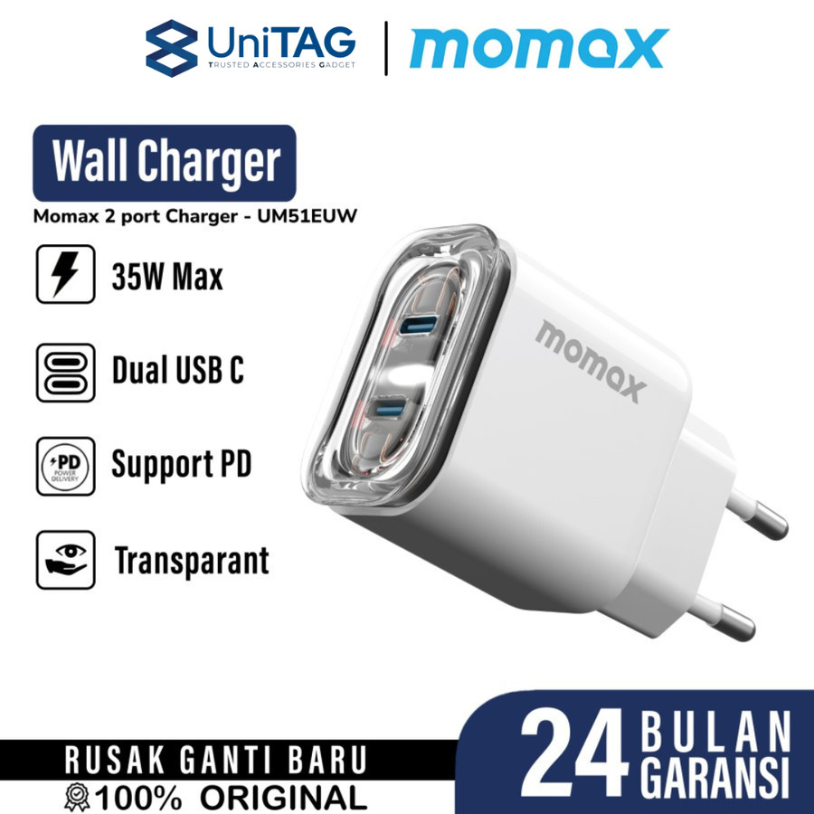 Wall Charger Adaptor USB Type C Momax 35W PD GaN Fast Charging 2 Port