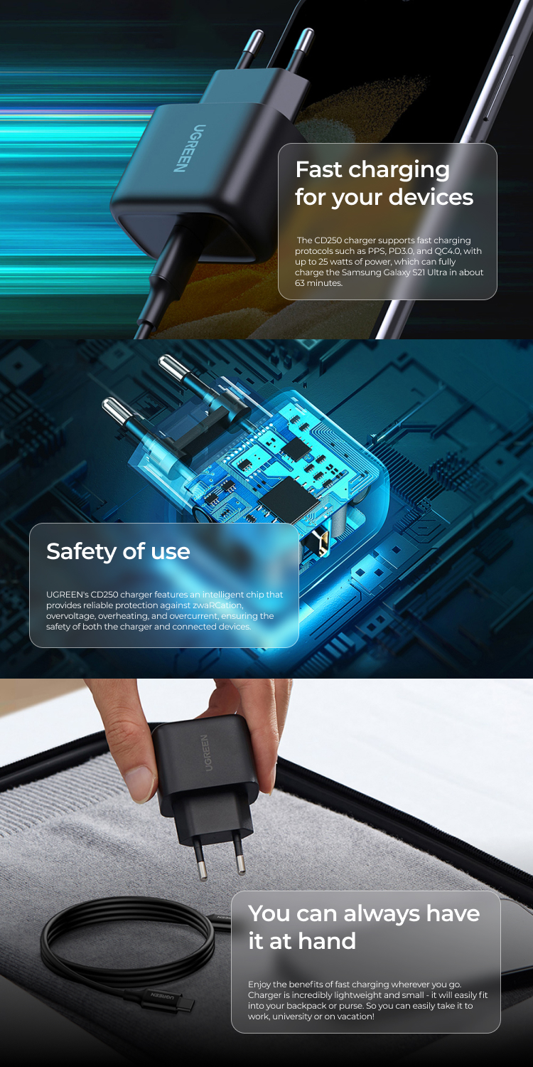 Kepala Charger for Kabel Data Fast Charging Samsung Galaxy S25 Edge Z Fold Flip 7 6 5 4 UGREEN 25W Adaptor Type C Cable