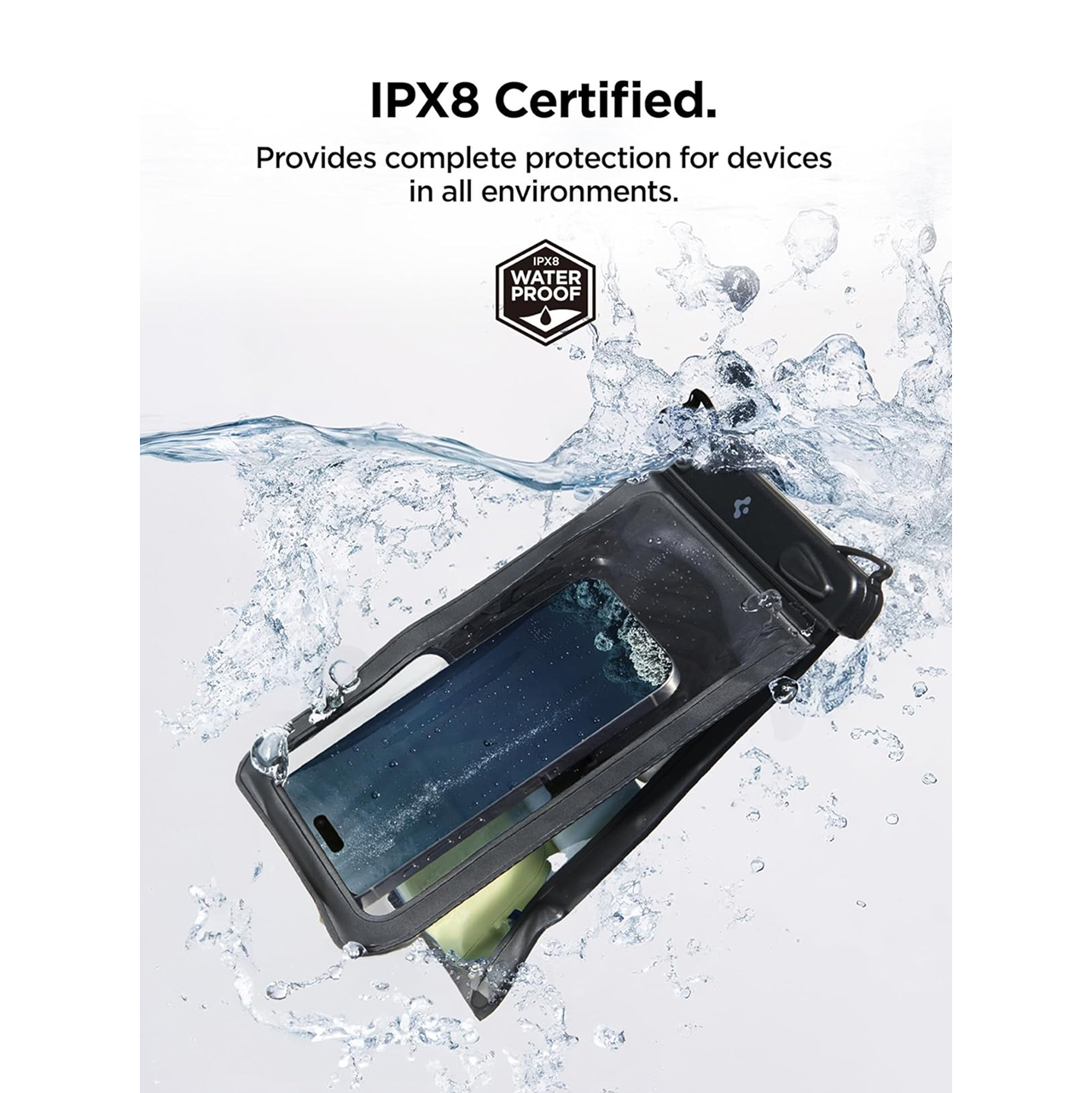 Dengan menggunakan teknologi secure lock dari Spigen yang sudah bersertifikasi IPX8 dapat bertahan hingga kedalaman 30 meter